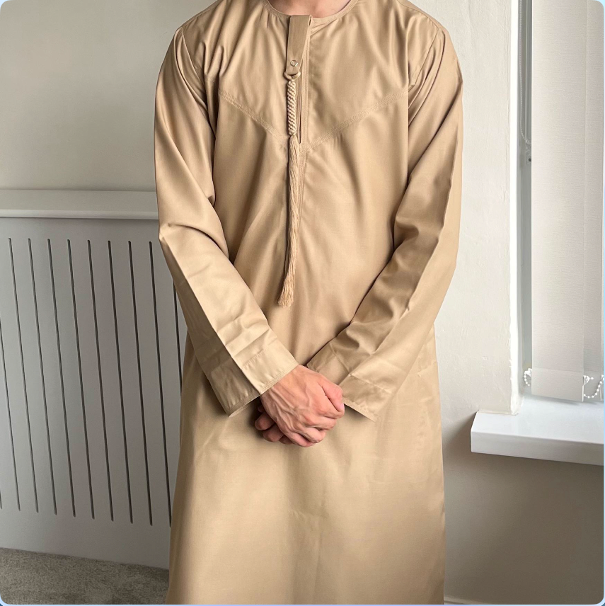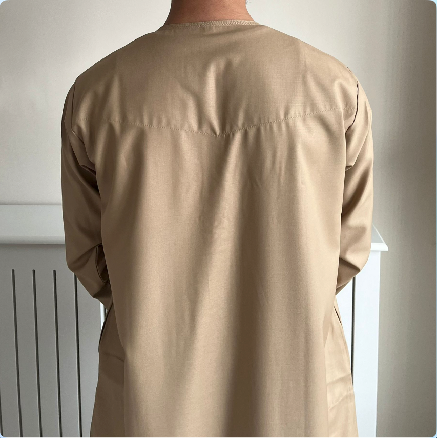 Earthy and versatile. This warm brown thobe is hand-finished, lightweight, and made to last through any season.